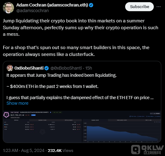 隨著大量資金流向交易所,行業專家和社區成員紛紛猜測Jump Crypto是否準備清算其持有的數億美元加密資產。盡管是否清算尚未確定,但一些crypto評論員對該公司在周末轉移資金的行為表示批評。