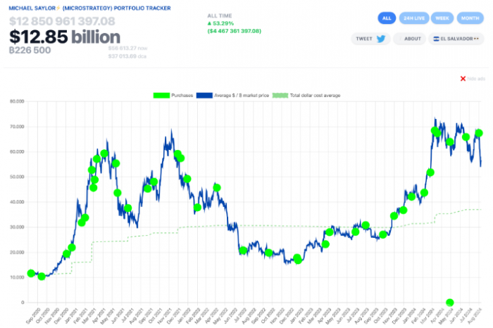 Saylor表示:“我個人持有大量Bitcoin。四年前,我在推特上公布了我擁有17,732個Bitcoin的消息。從那時起,我沒有出售任何Bitcoin,反而繼續(xù)增加我的持倉。”盡管Saylor并未透露他截至2024年持有的具體Bitcoin數(shù)量,但根據(jù)他2020年的公開數(shù)據(jù),他的初始投資現(xiàn)已增長至約9.96億美元。