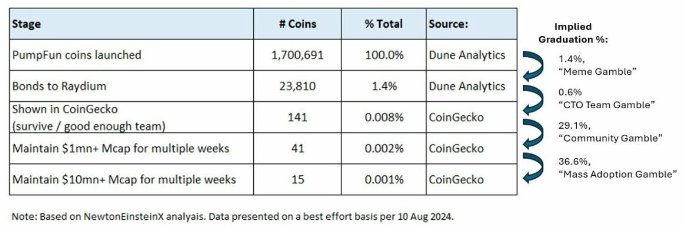 pump.fun平臺分析:170萬個Tokens中僅15個維持1000萬美元市值