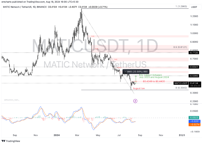 技術分析顯示,移動平均收斂發散 (MACD) 指標表明MATIC價格趨勢具有積極的基本面支撐。如果價格出現回調,MATIC可能會在8月5日的低點0.33美元附近找到支撐。