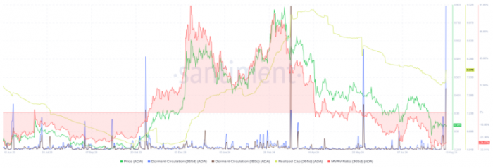 此外,Santiment的365天市值與已實(shí)現(xiàn)價(jià)值(MVRV)指數(shù)顯示,過去一年購買ADA的投資者平均遭受26%的損失,這表明投資者的整體收益表現(xiàn)不佳。
