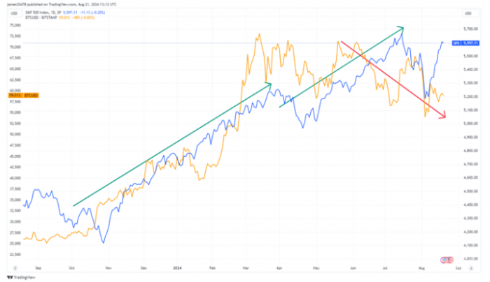 Bitcoin與標普500指數背離現象重現 市場動向引發熱議