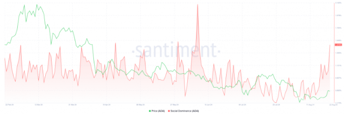 最近,ADA在社交媒體平臺上的討論量達到了2022年6月以來的最高水平,增長率高達1,474%。這一現象表明,ADA正吸引越來越多的加密社區關注,表現優于其他許多crypto。