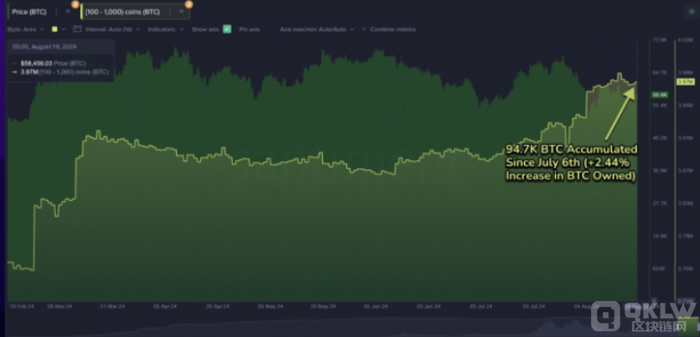 自7月5日以來,Bitcoin市場估值上漲了13%。這一增長表明,鯨魚在價格下跌時加大了對Bitcoin的積累,顯示出他們對未來價格上漲的信心。