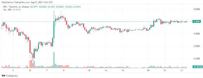 截至目前,XRP的交易價格約為0.60美元,過去24小時內下跌了0.5%,但本周已上漲超過6%。