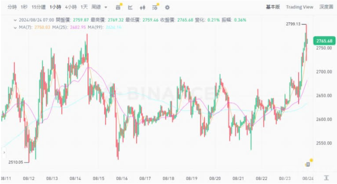 鮑威爾暗示降息 Bitcoin突破64,000美元 Ethereum超越2,700美元