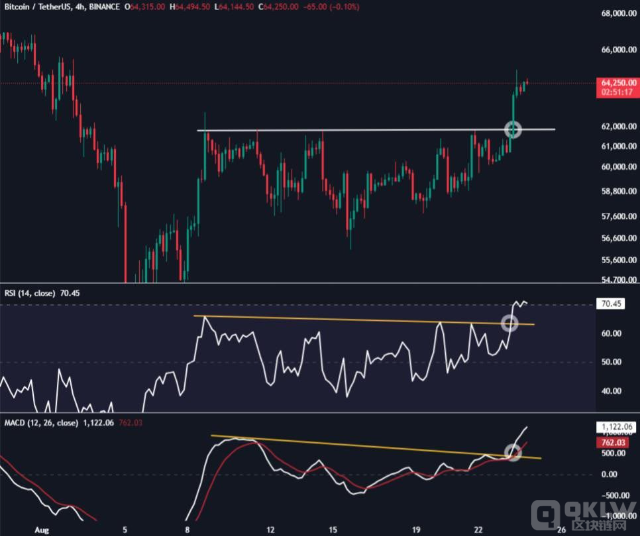 在一則8月24日的分析視頻中,一位匿名交易員Crypto先生指出,一旦Bitcoin超越64,000美元,將很有可能再次沖至68,000美元,這是8月30日曾觸及的價(jià)位。