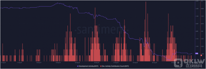 Santiment 的分析顯示,盡管開發者數量有所增加,但 DOT 的開發活動在過去 7 天內出現了急劇下降。這一趨勢可能影響投資者對 Polkadot 的信心。