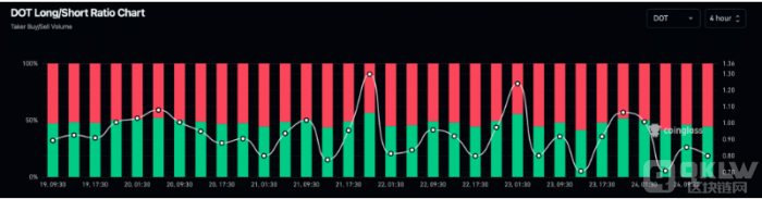 更值得關注的是,DOT 的多空比率正在下降,表明市場上的空頭頭寸開始增多,這可能會進一步影響價格穩定性。