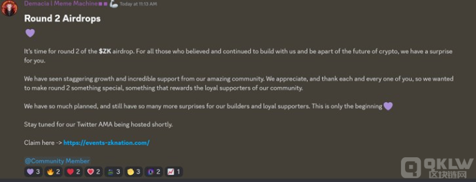 Avalanche 的社區(qū)負(fù)責(zé)人 Ben Well 隨后確認(rèn),團(tuán)隊(duì)已經(jīng)發(fā)現(xiàn)并解決了該問題,正努力恢復(fù)服務(wù)器的正常狀態(tài)。令人擔(dān)憂的是,就在 Avalanche 事件發(fā)生后不到一小時(shí),ZKsync 的 Discord 也被報(bào)道入侵,黑客再次分享了“第二輪空投”的惡意鏈接,試圖欺騙用戶獲取免費(fèi)的 ZK Tokens。