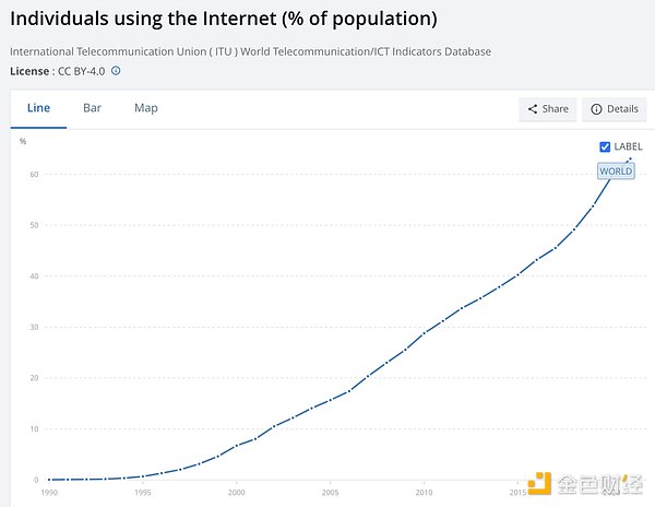 不過當1995年Windows95操作系統發布之后,上述情況就完全改變了,計算機開機之后直接進入圖形操作系統(GUI),用戶用鼠標點擊就可以完成各項操作,同時瀏覽器的出現使得用戶進入互聯網的門檻也大大降低。從命令符操作到圖形操作系統,在某些人看來只是體驗上的一點微小地提升,圖形操作系統只是將底層的命令符操作加以一定的包裝,變成適用于普通用戶理解的方式,比起處理器等硬件性能的提升,看起來可能并沒有那么的技術進步。但是事實上,正是Windows95降低了普通用戶使用計算機的門檻,才推動了個人電腦在普羅大眾中的迅速普及。而越來越多的計算機出貨量反過來也降低了IntelCPU的成本,使得個人電腦的性能和體驗進一步提升,最終出現了左腳踩右腳的梯云縱效應,計算機和互聯網的滲透率迅速在全球范圍內提升,帶來了隨后的互聯網浪潮。