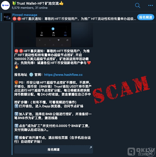 偽裝成知名平臺:騙子常在TG等社交平臺上冒充知名交易所,建立虛假的群組。這些群組的成員人數龐大,但實際活躍用戶很少,容易讓人放松警惕。