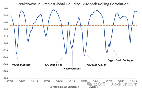 Bitcoin與全球流動性的相關性很高,但并不能免受特殊事件或內部市場動態引起的短期偏差的影響,尤其是在極端估值時期。