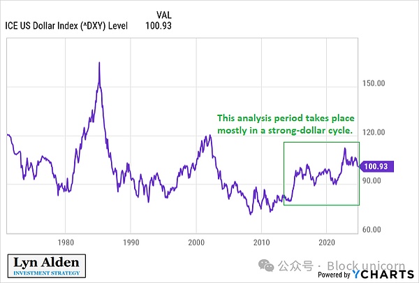 這里的一個細微差別是全球M2以美元計價。LynAlden在之前的一篇文章中解釋了為什么這一點很重要:
