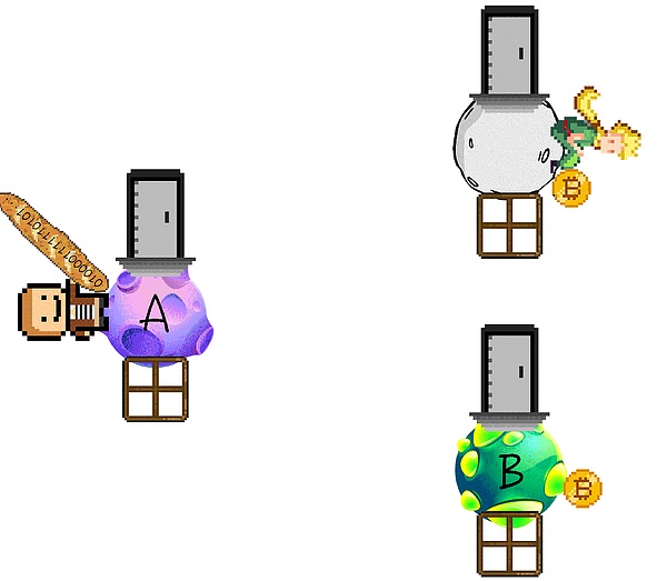 注意!此時這2個幣都會從我的A星球的門出去,其中一個幣通過窗戶落進小王子的星球,另一個幣會通過窗戶落入“B星球”。