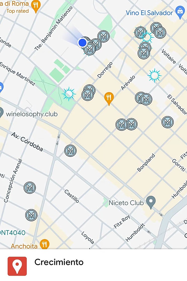 在布宜諾斯艾利斯,只需要用谷歌地圖進行“moneyexchange”類似的關鍵詞搜索,地圖上就會浮現密密麻麻的小紅點,你只需要步行前往最近的一個即可。