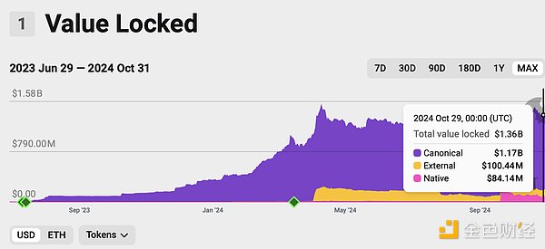 Mantle的TVL,來源:l2beat,2024/10/31