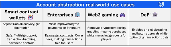 像Visa這樣的主要公司今天正在使用賬戶抽象。游戲使用它來簡化復(fù)雜性。DeFi應(yīng)用使交易變得更加簡單。