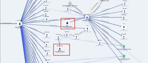 雖然Bybit采用了多簽機制,但多個簽名方依賴于相同的基礎(chǔ)設(shè)施和驗證流程,一旦其中一個環(huán)節(jié)被攻破,整個安全體系即被突破。攻擊者只需攻破一個簽名者的設(shè)備,即可偽造交易并獲取足夠的簽名權(quán)限。被盜資金*洗*錢路徑與關(guān)鍵節(jié)點突破