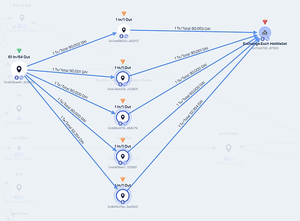 Bybit黑客銷贓模式趨于穩(wěn)定,主要使用Thorchain將資產(chǎn)轉(zhuǎn)移至BTC公鏈,以及利用OKXDEX兌換為DAI再進行流轉(zhuǎn)。
