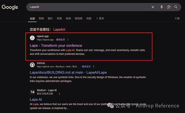 看起來一切正常,我就注冊了賬號,填入了對方的邀請碼。注意,其實LapeAI.app與LapeAI.io本來就是同一個網(wǎng)站。只是.app那個被發(fā)現(xiàn)了,又申請了新的.io的,你接著往下看就明白了。