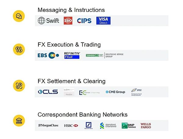 外匯結算與清算:外匯結算層確保交易得到妥善結算,從而避免任何一方違約的風險。它們采用支付對等支付(PvP)模式,確保貨幣兌換的雙方同時進行,從而消除交易對手風險。如果沒有這樣的系統,交易可能會失敗,即一方交付貨幣,但無法收到預期的資金。