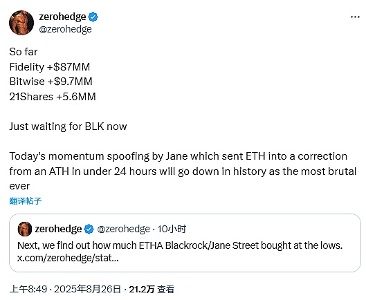 另一個引發(fā)關(guān)注的傳言涉及做市商JaneStreet的操作。有消息稱,該公司的"動量欺騙"操作導(dǎo)致Ethereum在創(chuàng)出歷史新高后不到24小時內(nèi)陷入修正,被形容為"史上最殘酷"的操作之一。
