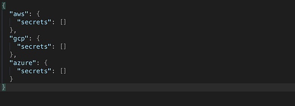 AWS:該惡意腳本實(shí)現(xiàn)runSecrets()和listAndRetrieveAllSecrets()方法,runSecrets()方法會(huì)遍歷所有能找到的云訪問(wèn)憑據(jù)以及所有可能的區(qū)域,最大化掃描范圍;而listAndRetrieveAllSecrets()則在指定憑據(jù)與區(qū)域內(nèi)進(jìn)行“深度挖掘”,遍歷出所有Secret,并獲取其最新明文內(nèi)容。兩者配合后,攻擊者能夠?qū)⑹芎φ逜WS賬號(hào)中可訪問(wèn)的所有SecretString和SecretBinary一次性全部導(dǎo)出。