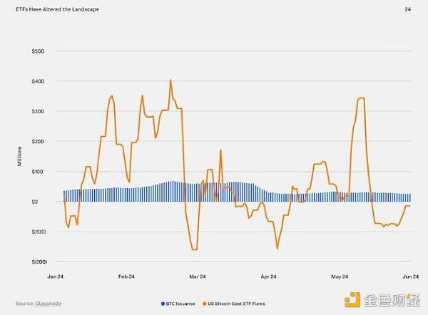 現(xiàn)貨ETF推動(dòng)了對(duì)BTC的大量新需求,而新的BTC供應(yīng)仍然局限于礦工獎(jiǎng)勵(lì)。自現(xiàn)貨ETF開(kāi)始交易以來(lái),ETF的需求大大超過(guò)了BTC的發(fā)行量。