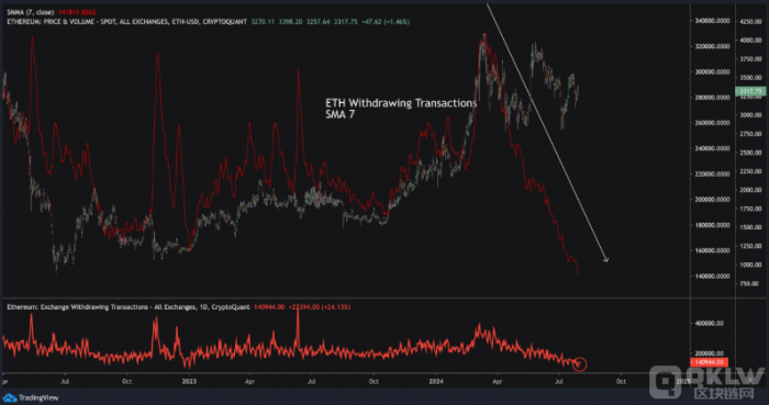 獨立分析師Crypto Lion指出,自3月份以來,Ethereum在交易所的提款數量大幅減少,這一指標與價格高度相關。這表明市場對ETH的需求并不高。